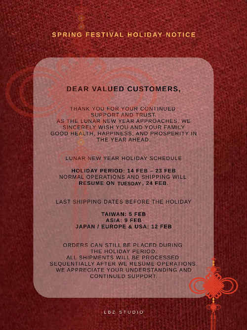 Our Lunar New Year holiday runs from 14–23 Feb.