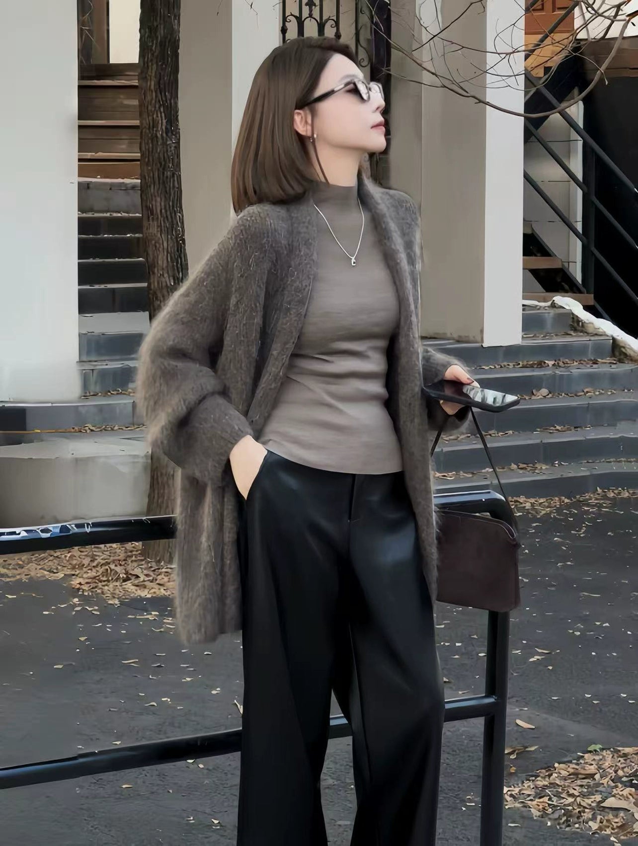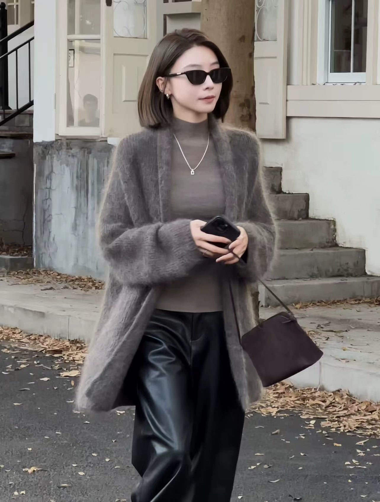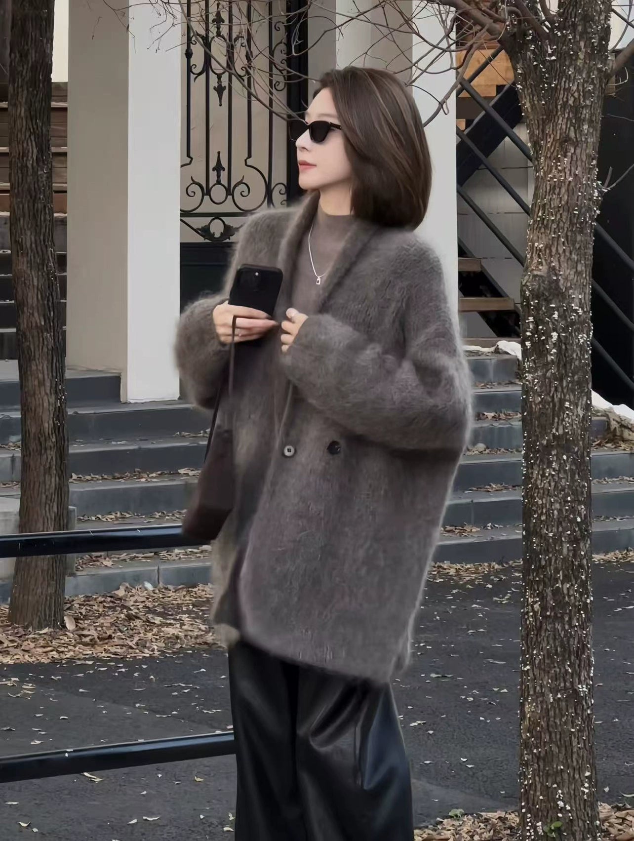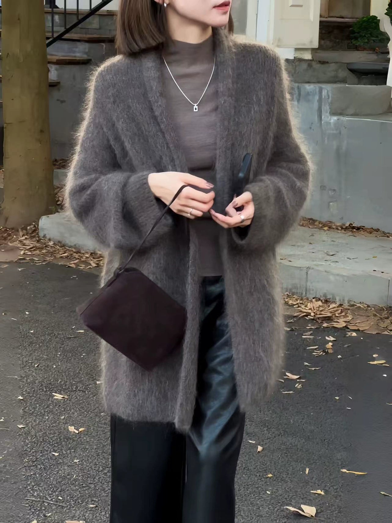 柔らかくふわふわしたVネックのカーディガン。リラックスしたエレガントなシルエットで、軽くて心地よく、最小限のムードで気軽な暖かさを提供します。
