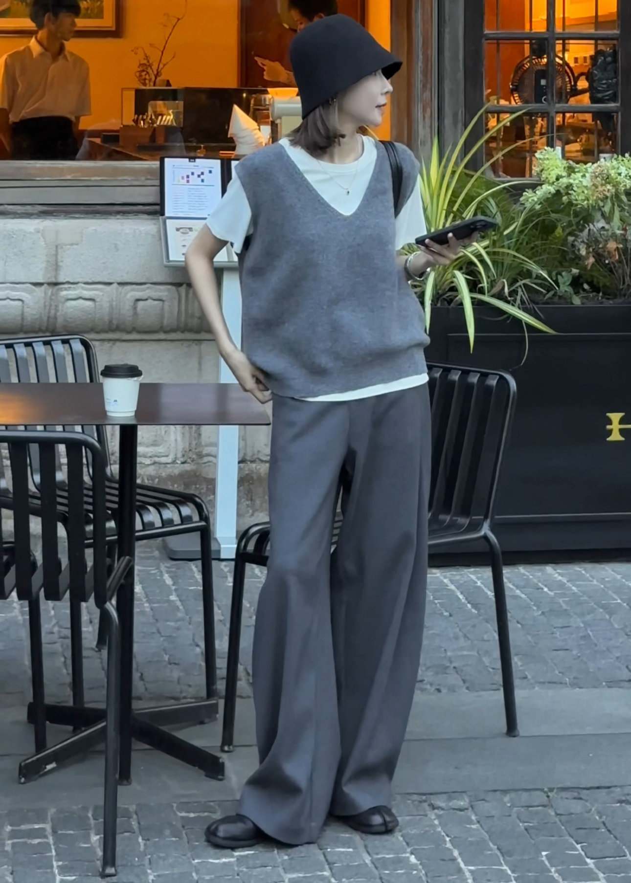 Curved Cut Relaxed Casual Pants(Z1436)